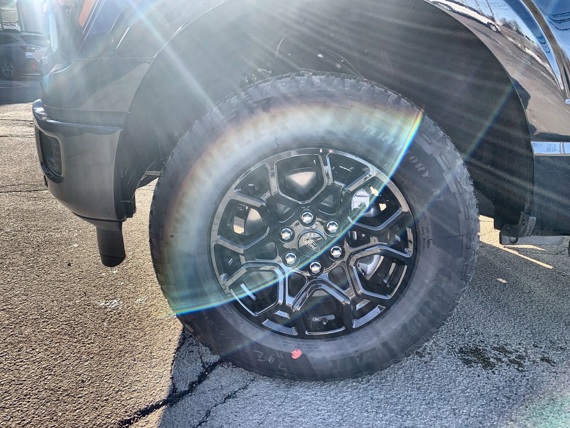 - XLT BLACK APPEARANCE PACKAGE -inc: Black Grille Gray Box Side Decal Black Exterior Badging 6 Black Running Boards Wheels: 18 Gloss Black Body-Color Front & Rear Bumpers Body-Color Door Handles Dark Interior Appliques
